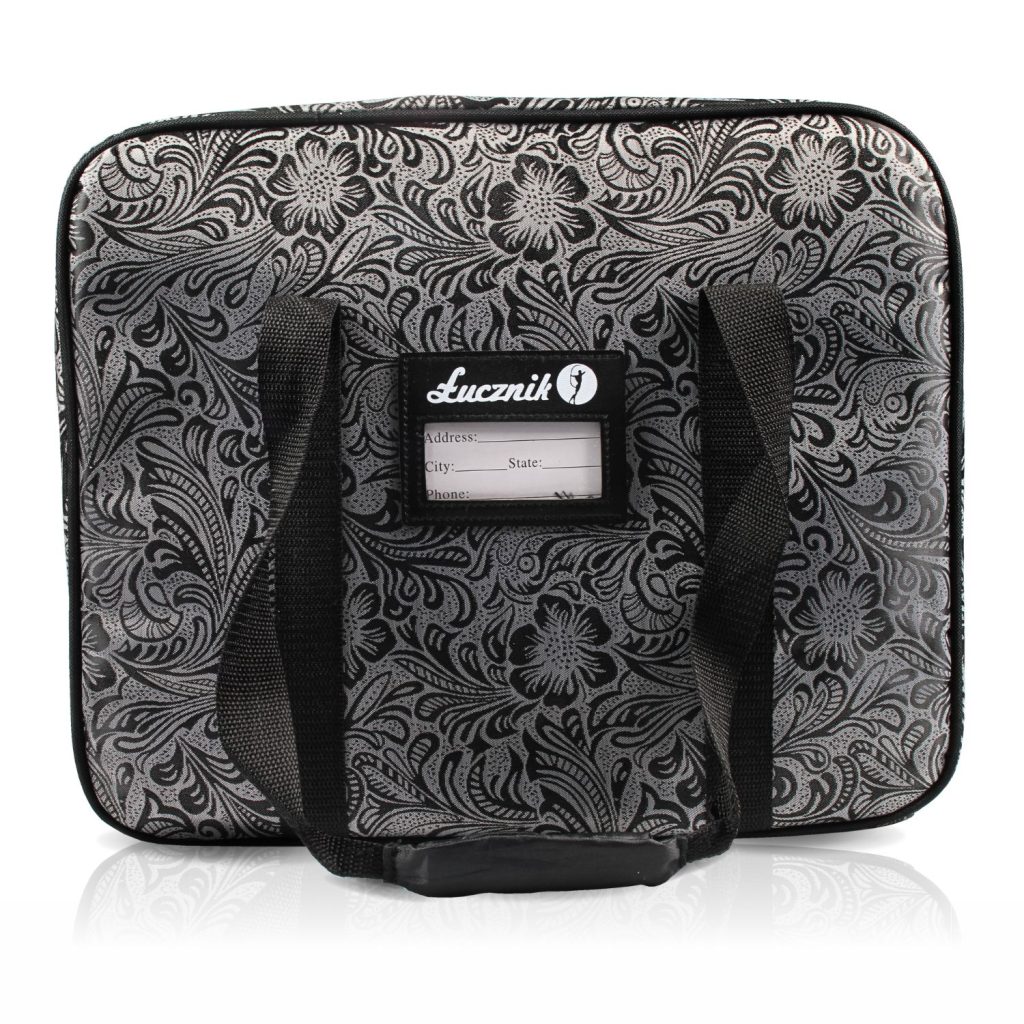 Unser Koffer aus schmutzabweisendem Jacquardmaterial mit schönen silbernen und schwarzen Blumen ist nicht nur funktional, sondern auch sehr stilvoll. Dank der praktischen Griffe und des geringen Gewichts lässt sich die Maschine leicht von Ort zu Ort tragen.