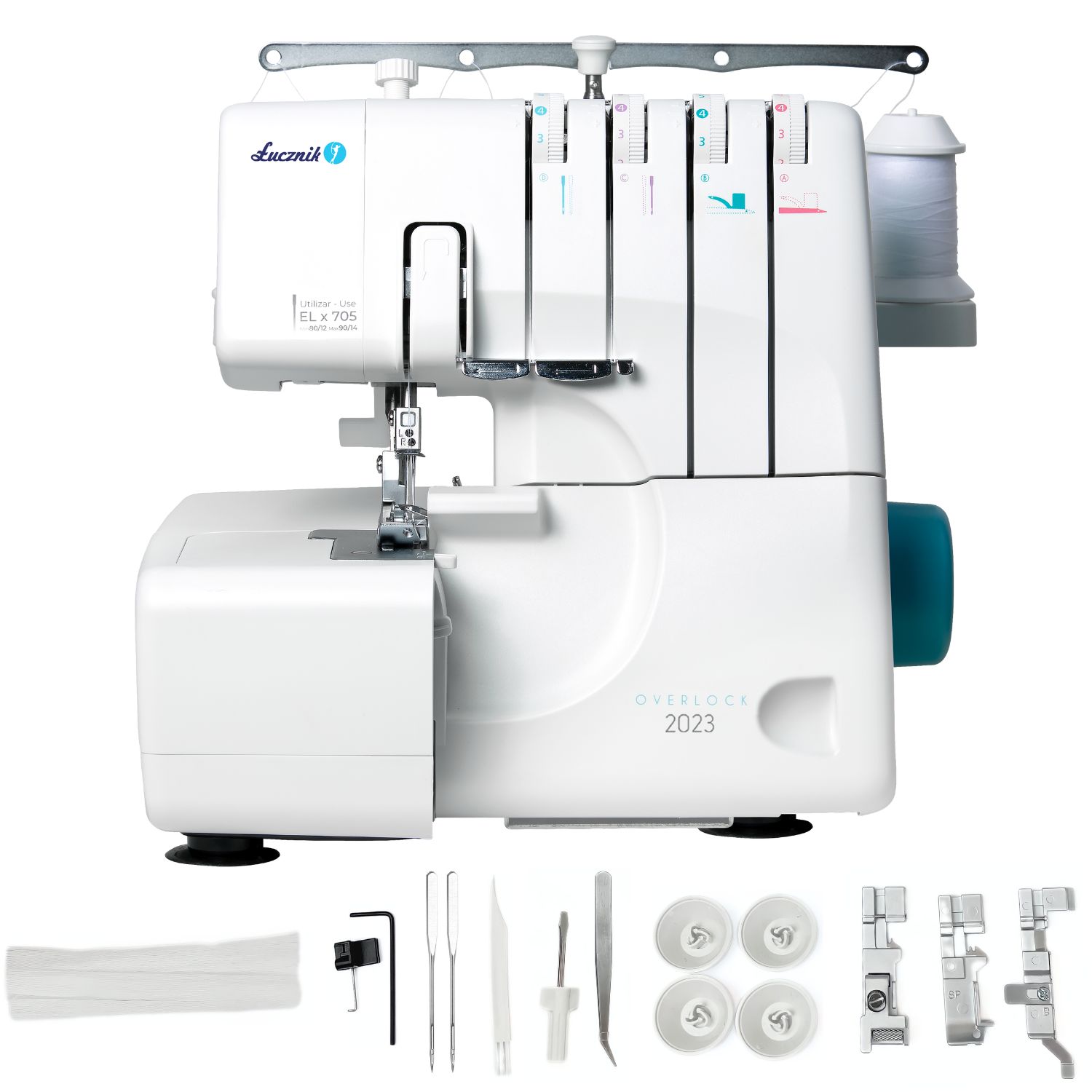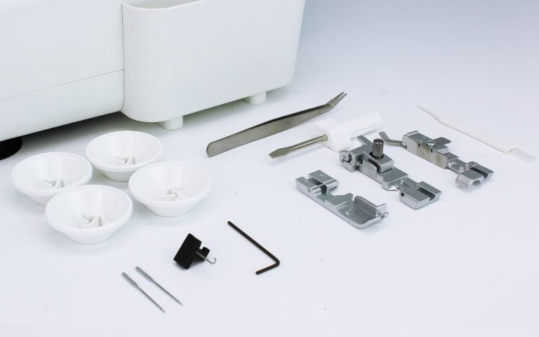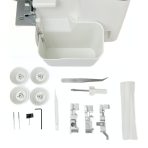 A set of needles, tweezers, an Allen key for changing needles, a screwdriver – everything you need to make your Overlock 2023 work perfectly. If you need more needles, be sure to take a look here.