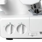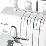 4-thread, 2-needle overlocker with 100 W. 1300 RPM. 12 stitches including overlock, rolling and flatlock. Sewing with 1 or 2 needles. Adjustable stitch width and length, thread tension and foot pressure. Differential transport and easy threading.