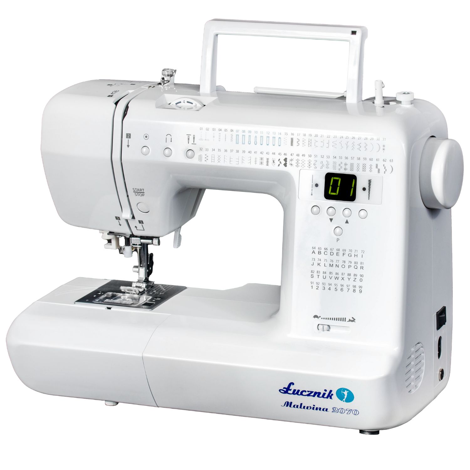 W odróżnieniu od tradycyjnych maszyn mechanicznych Malwiną można sterować nie tylko poprzez dołączony do niej regulator nożny, ale również przez przycisk START/STOP w obudowie, co okazuje się rozwiązaniem niezwykle wygodnym – maszyna szyje wtedy w pełni automatycznie, bez użycia nożnego sterowania!. Co więcej, Malwina 2070 umożliwia manualne ustawienie prędkości szycia dzięki jasno oznaczonemu suwakowi. Jeżeli ma nią operować osoba mniej doświadczona, możemy po prostu przesunąć suwak w stronę żółwika, aby spowodować maksymalne zmniejszenie prędkości pracy. I odwrotnie- jeżeli zależy nam na zwiększeniu prędkości szycia, wystarczy, że przesuniemy suwak w stronę zająca.