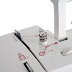 Kończąc pracę łatwo utniesz nić przeciągając ją przez specjalny nożyk ukryty w obudowie, natomiast rozpoczynając szycie zabezpieczysz ścieg ryglem wykonanym przy pomocy dźwigni szycia wstecznego.