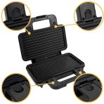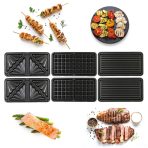 • trzy wymienne płyty o dużych rozmiarach (28,5×15,5 cm) do grilla, tostów, panini i gofrów