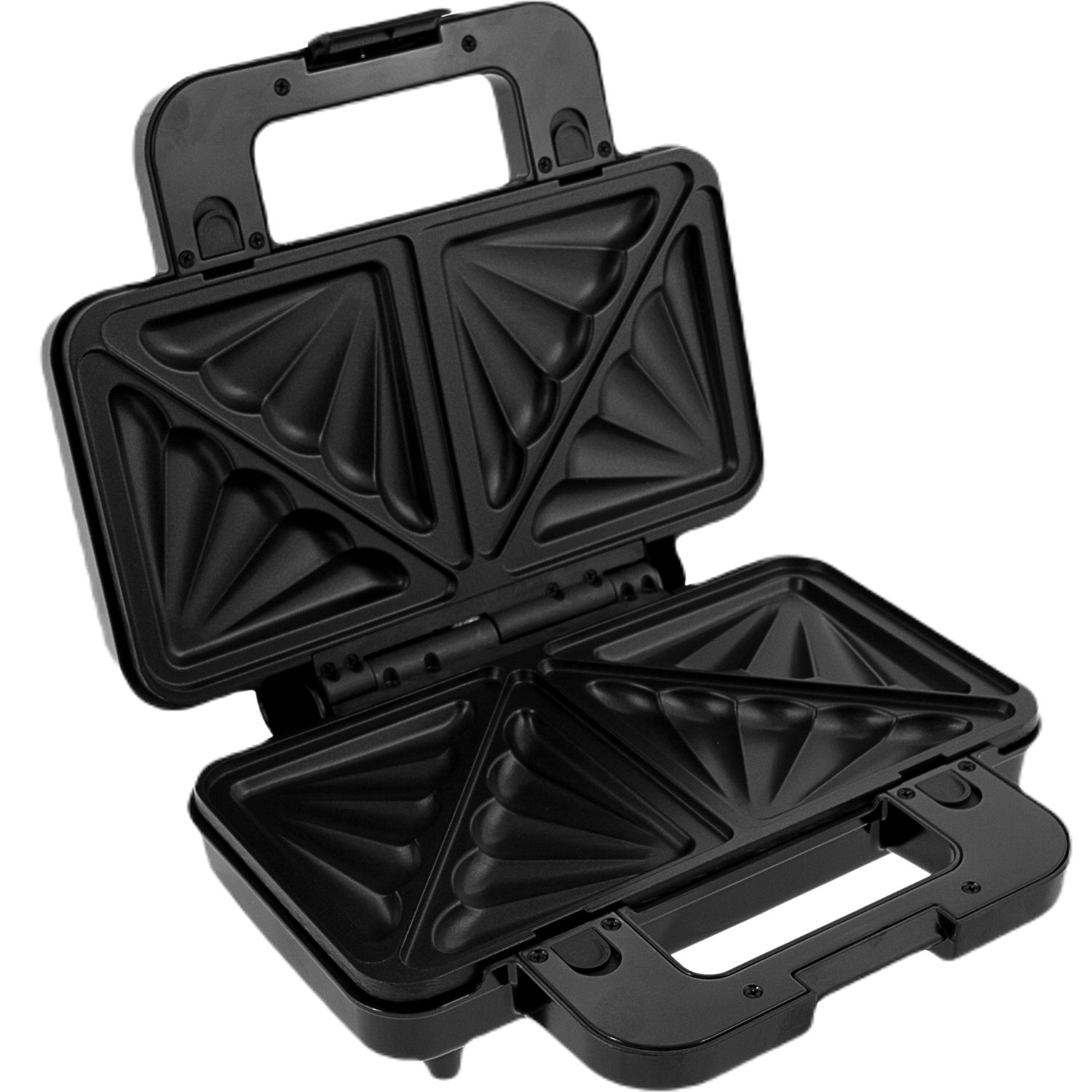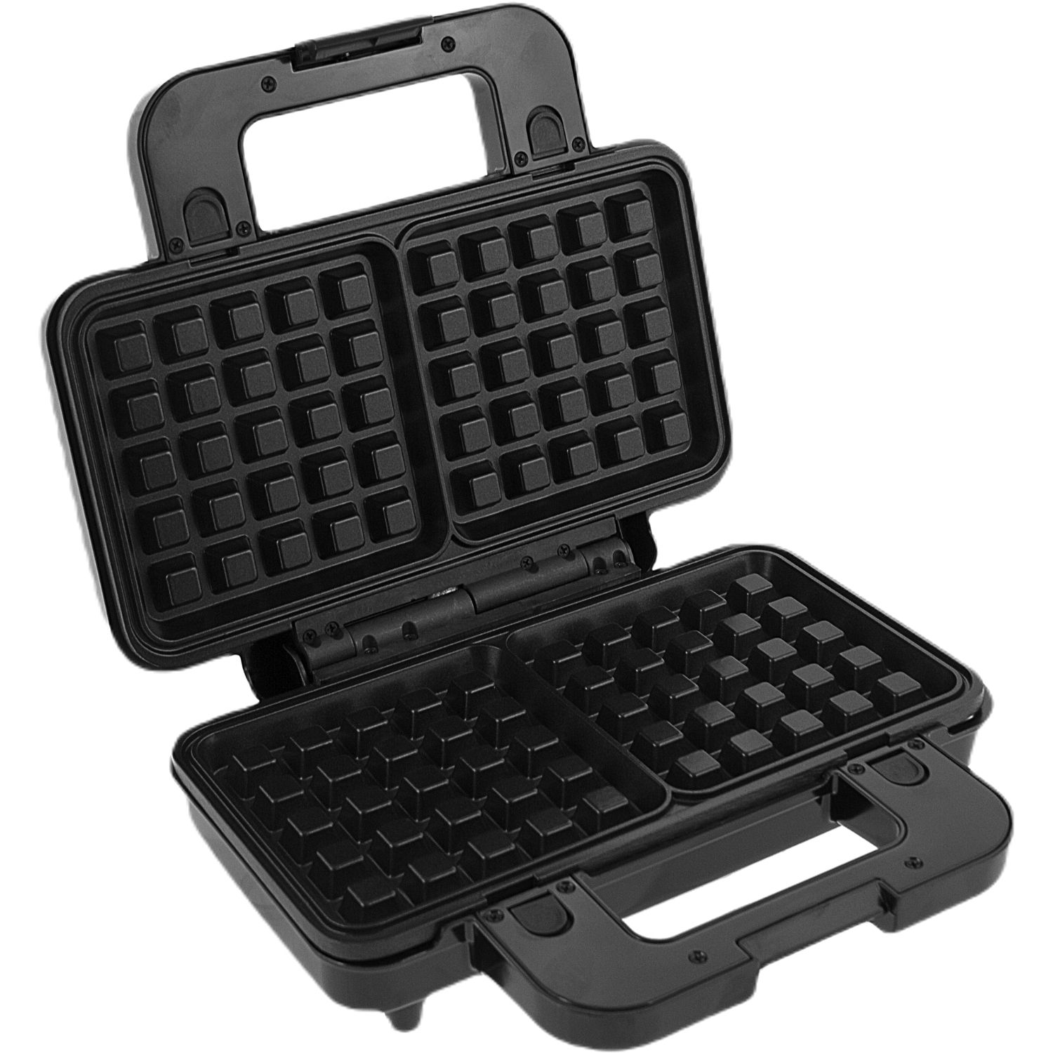 Opiekacz 3w1 o mocy 1000 W. Trzy wymienne płyty o dużej powierzchni – do grilla lub panini, do tostów, do gofrów. Antypoślizgowe nóżki. Nieprzywierająca powłoka. Szybkie nagrzewanie – ok. 5 min.
