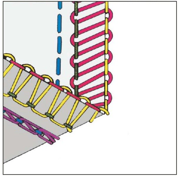- ściegi: rotujące, obrzucające, łańcuszkowy i drabinkowy