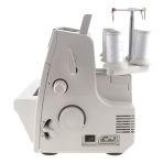 Nasz overlock 5-nitkowy posiada teleskopowy prowadnik nici oraz czytelną instrukcję nawlekania pod pokrywą osłaniającą. W szufladce na akcesoria znajduje się między innymi pęseta, która znacznie ułatwia proces nawlekania nici. Overlock 820D5 wyposażony jest również w pojemnik na ścinki materiału oraz osłonę chroniącą przed kurzem i brudem. W sprzedaży dostępne są specjalistyczne stopki zatrzaskowe do tego modelu.