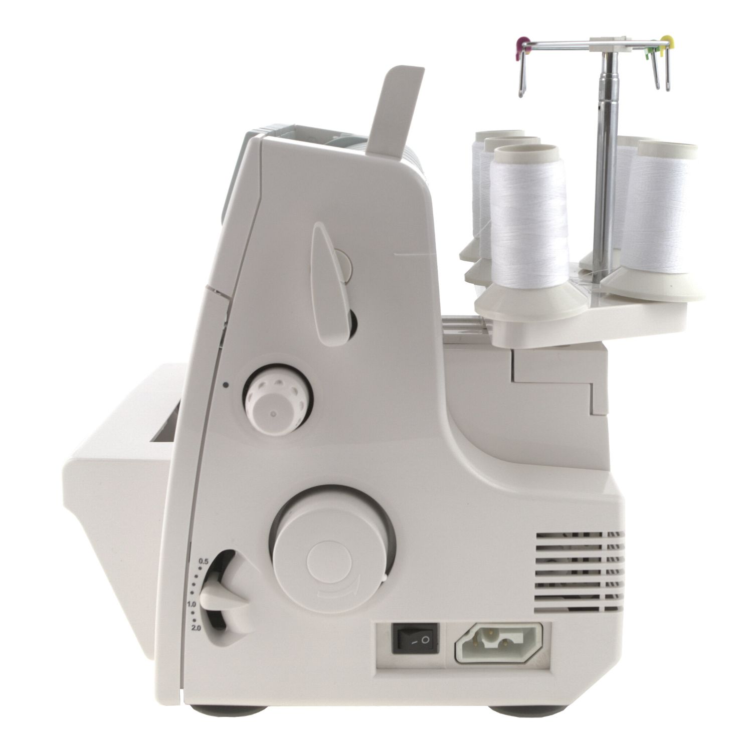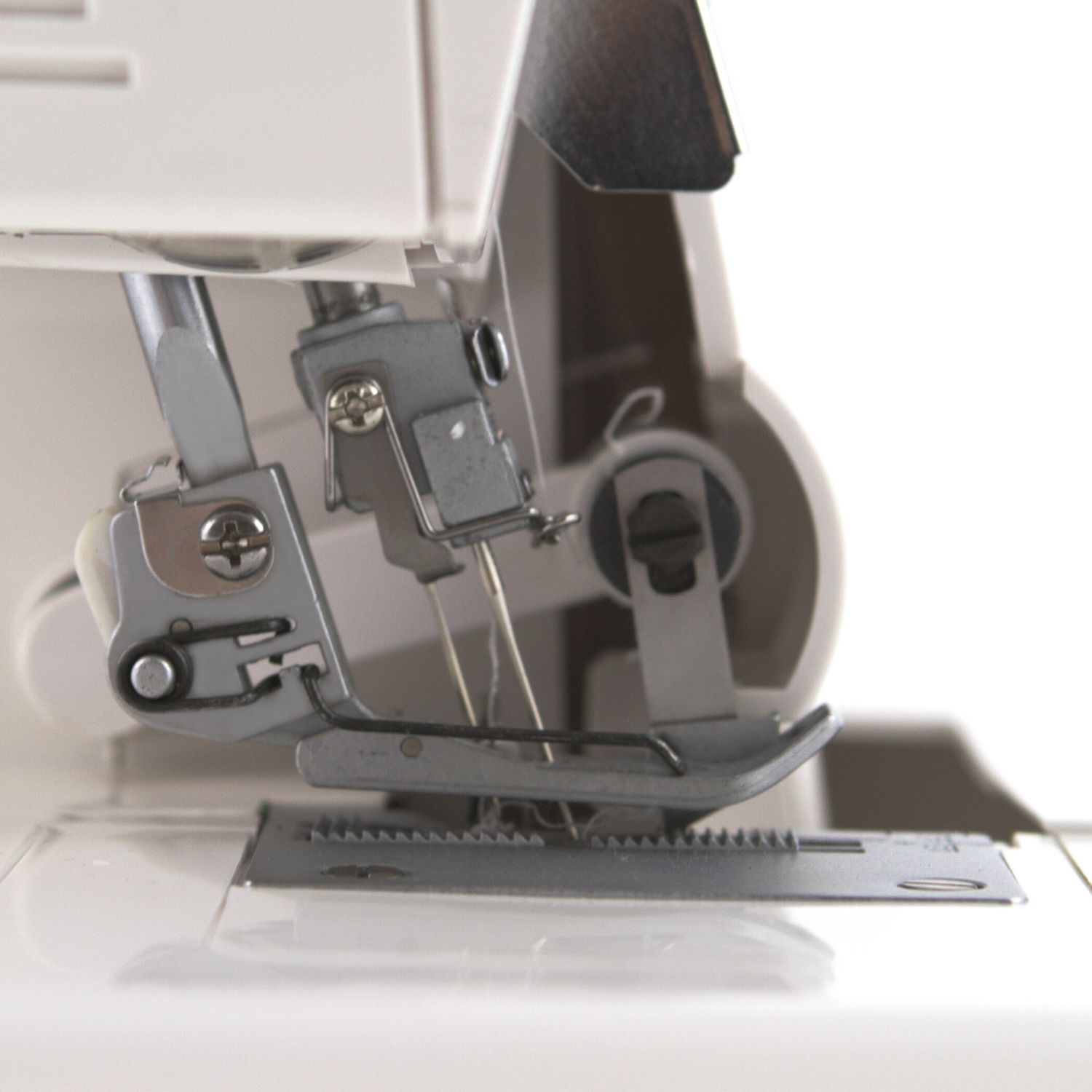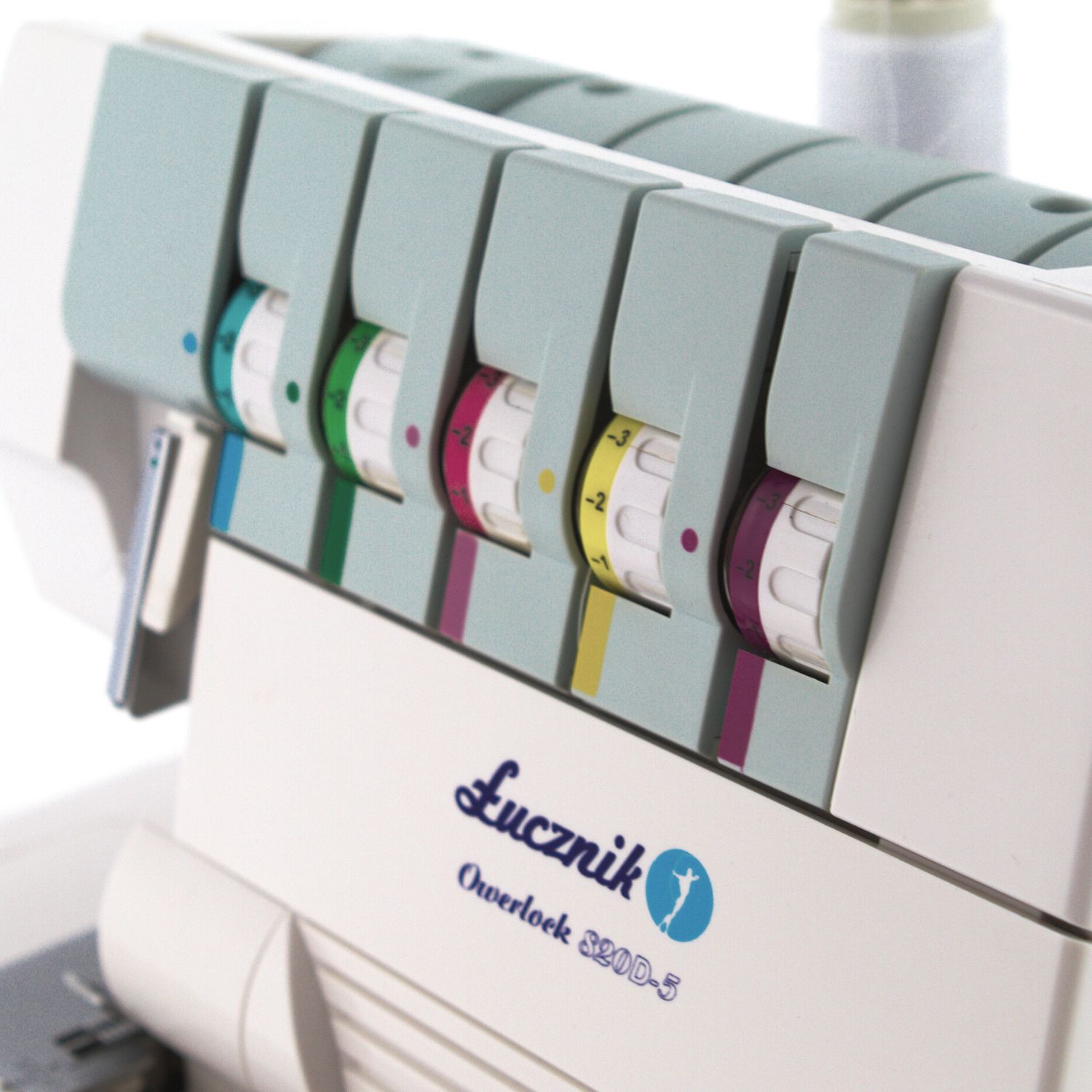 Kolorowy system nawlekania pozwala łatwiej zorientować się w gąszczu chwytaczy, haczyków i oczek we wnętrzu overlocka. Regulacja docisku stopki podobnie jak w maszynach do szycia odpowiada za siłę docisku stopki do ząbków transportera, czyli ma istotny wpływ na transport materiału podczas pracy na maszynie. Ustawienie większej wartości oznacza zwiększenie docisku i odwrotnie.