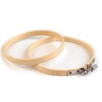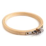 Nasz pomocnik haftowania składa się z dwóch drewnianych obręczy, które zaciska się na siebie napinając jednocześnie naciągnięty między nimi materiał – kanwę. Dodatkowo tamborek wyposażony jest w metalowe pokrętło, dzięki któremu można regulować naprężenie haftowanego materiału.