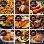 Przygotowanie: Posypać piersi z kurczaka ulubionymi przyprawami, umieścić w koszu frytkownicy i piec przez około 10-15 minut, aż będą soczyste i dobrze przypieczone. Piec w temperaturze 180ºC