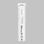 Linijka do znakowania posiada wyraźną i dokładną podziałkę do 20 cm po obu stronach. Nie posiada marginesu, dzięki czemu miara rozpoczyna się w raz z początkiem linijki.