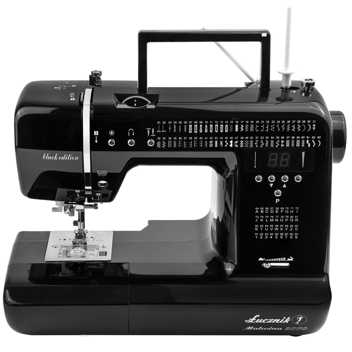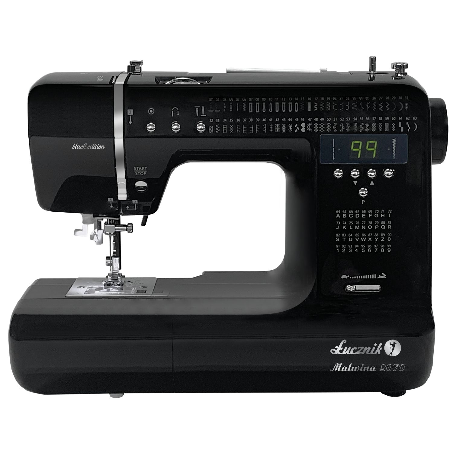 Malwina 2070 Black Edition oferuje aż 99 programów ściegowych, w tym 36 opcji liter i cyfr, dzięki czemu możesz personalizować swoje projekty na nieskończone sposoby.