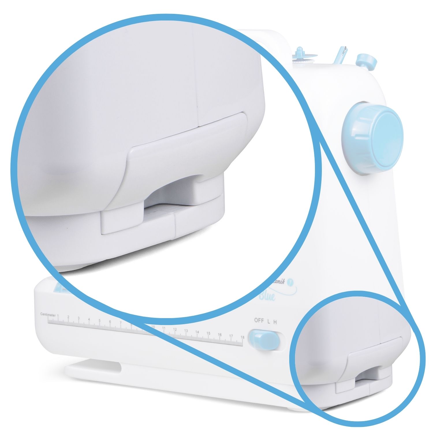 Bezpieczeństwo, ale też i wygodę, podczas korzystania z maszyny Mini Blue zwiększa też zamontowane w obudowie LED-owe oświetlenie. Nie tylko sprawia, że pole szycia jest dobrze widoczne, ale też dba o oczy Twojego dziecka. Mała krawcowa, czy też mały krawiec, nie będą bowiem musiały nadwerężać wzroku, by widzieć to, co robi.