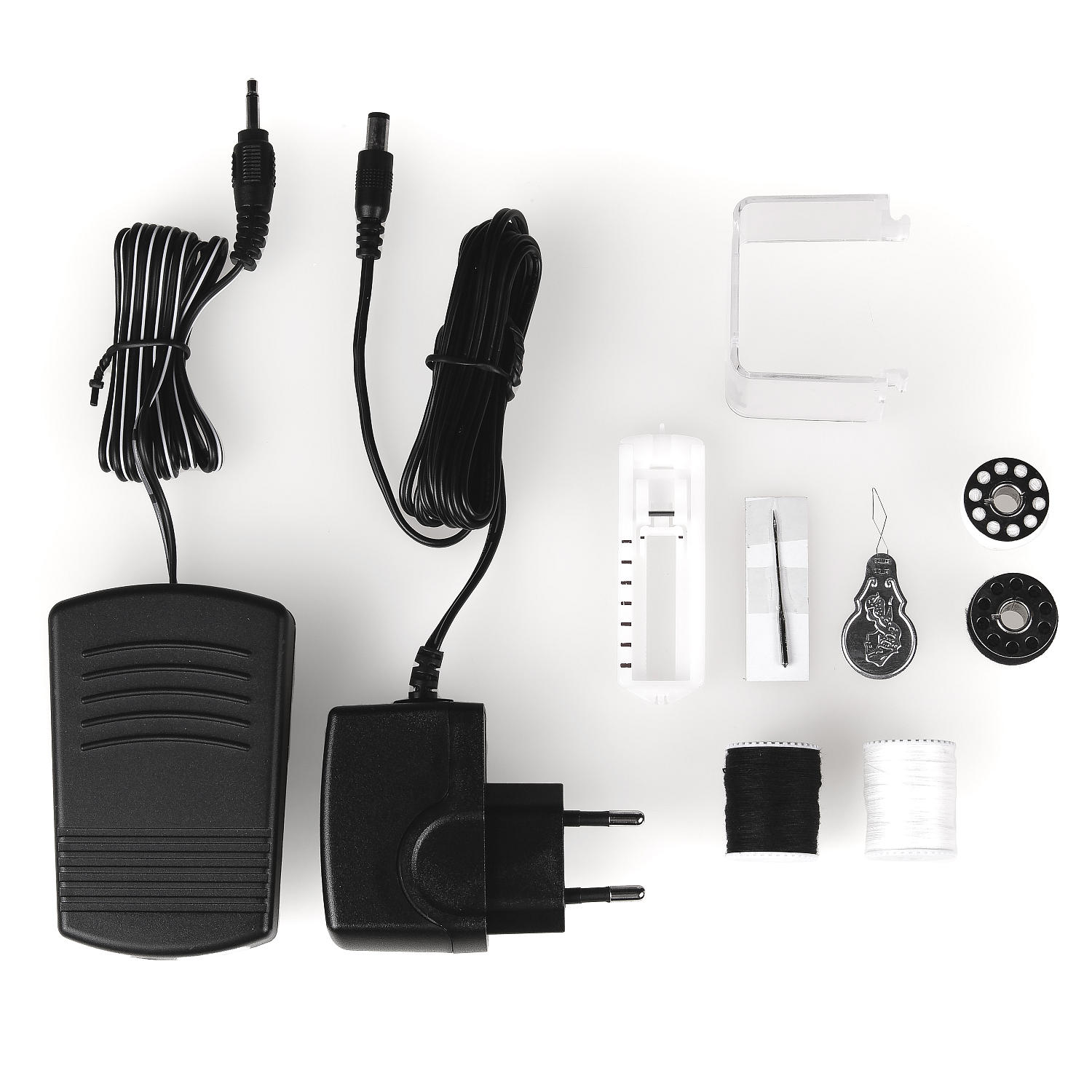 • 2 szpulki z nicią górną (biała i czarna)